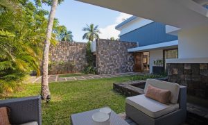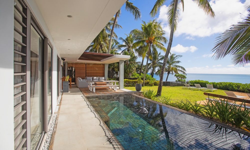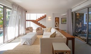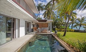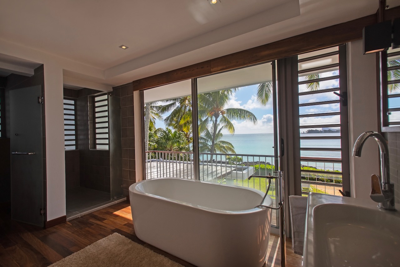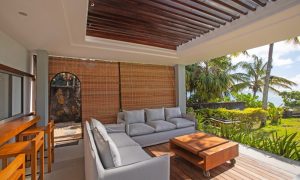 Open the large sliding doors and let the sea breeze in. Spend time relaxing in the beautifully furnished lounge area or dining on the covered veranda that faces the ocean.
