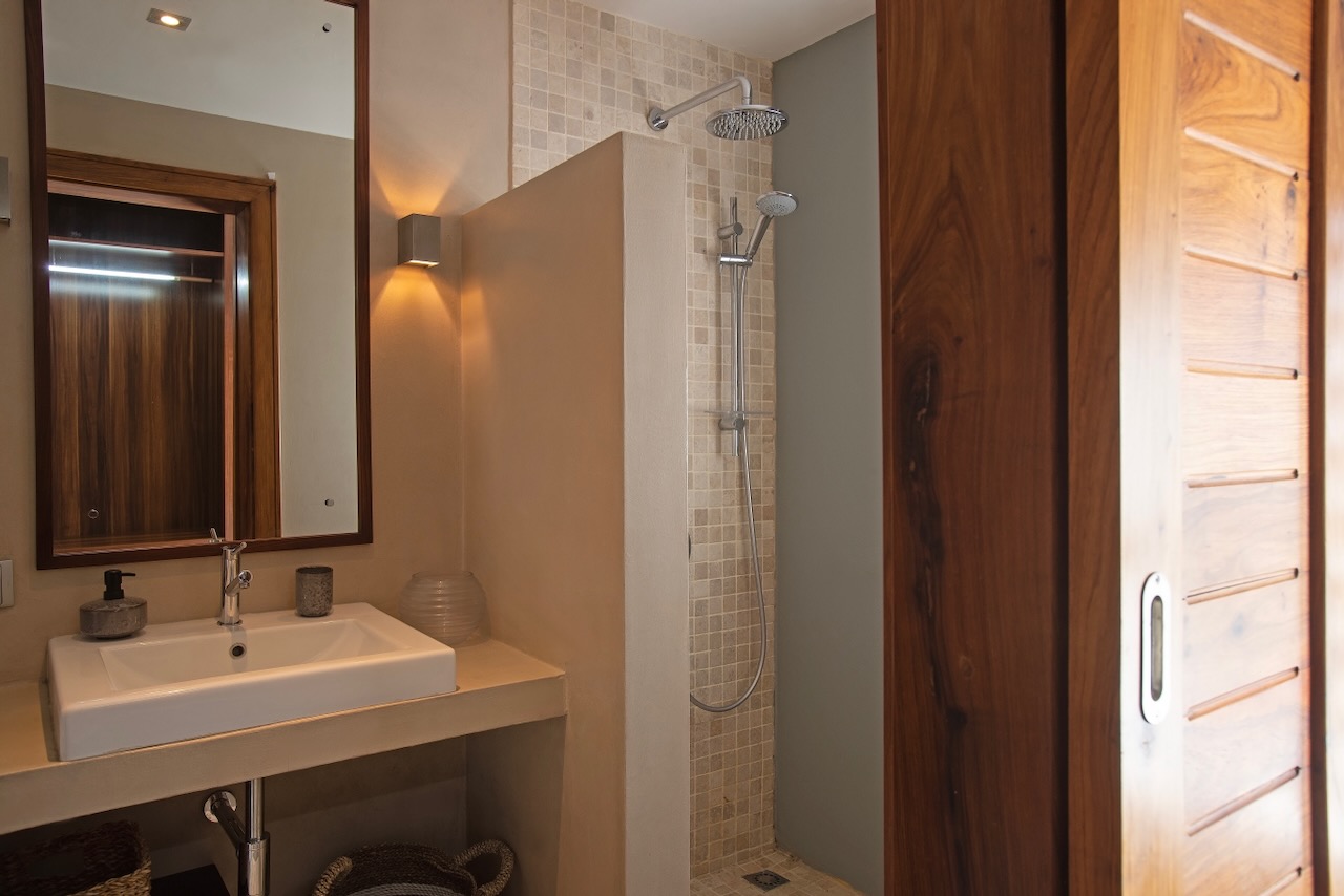 The tropical garden and the sea in front of your home is perfect for a peaceful rest, reading and daydreaming. Even though there are the typical black lava rocks in front of the beach, great snorkelling and swimming are just steps away. A few meters down, a small sandy beach offers his shore for the ultimate swim in the turquoise blue of the sea.