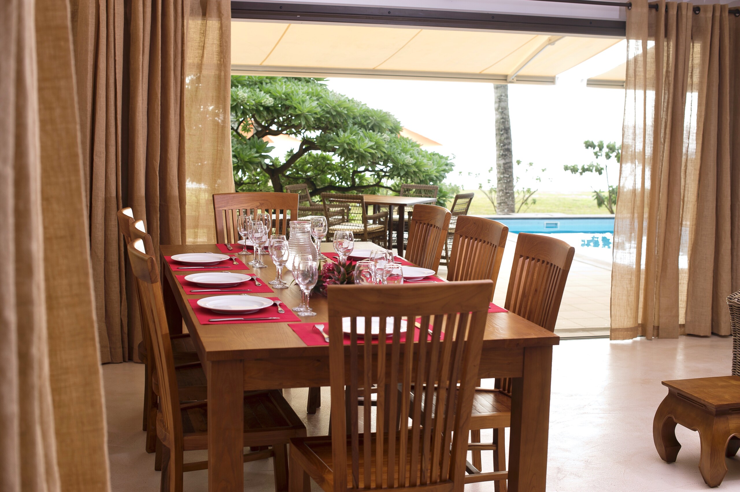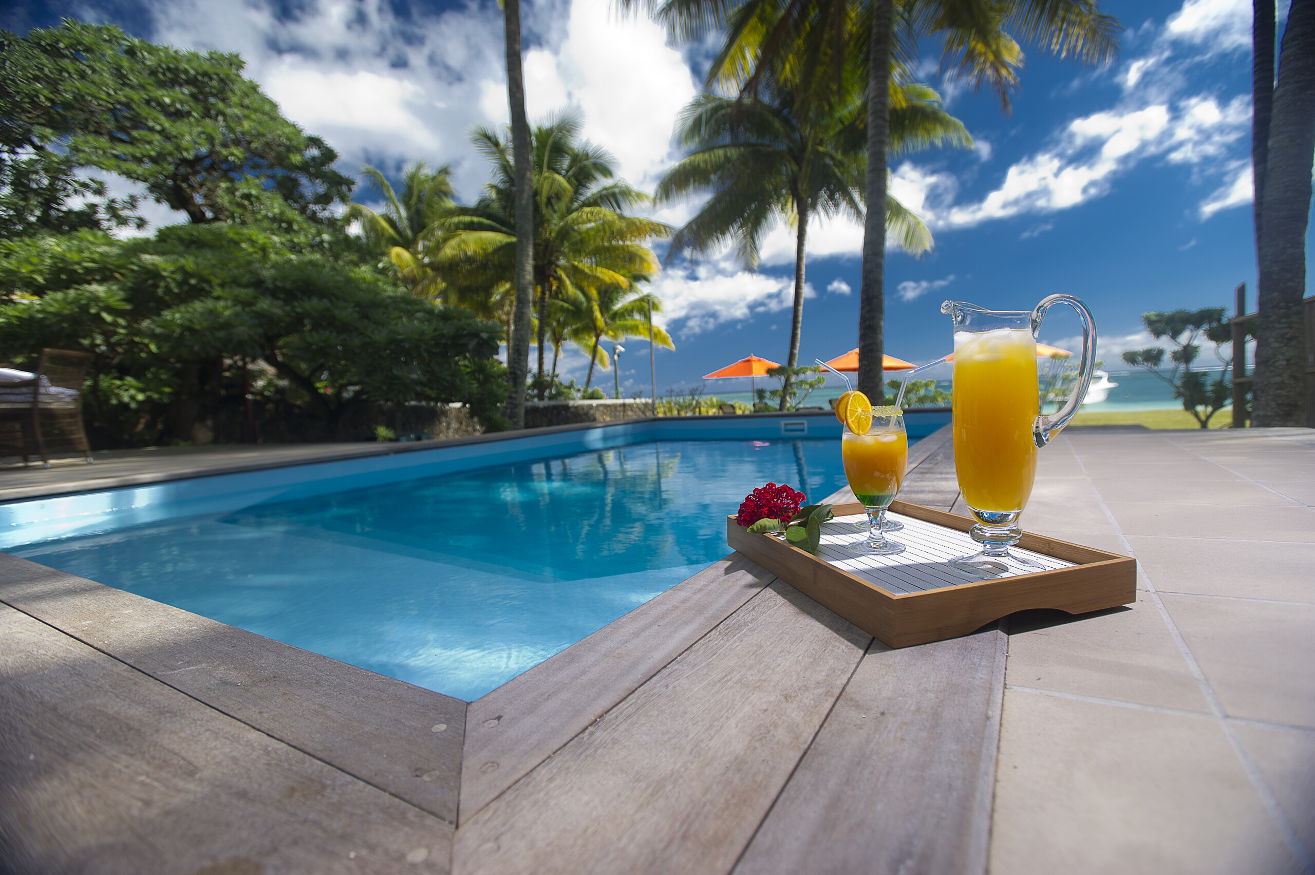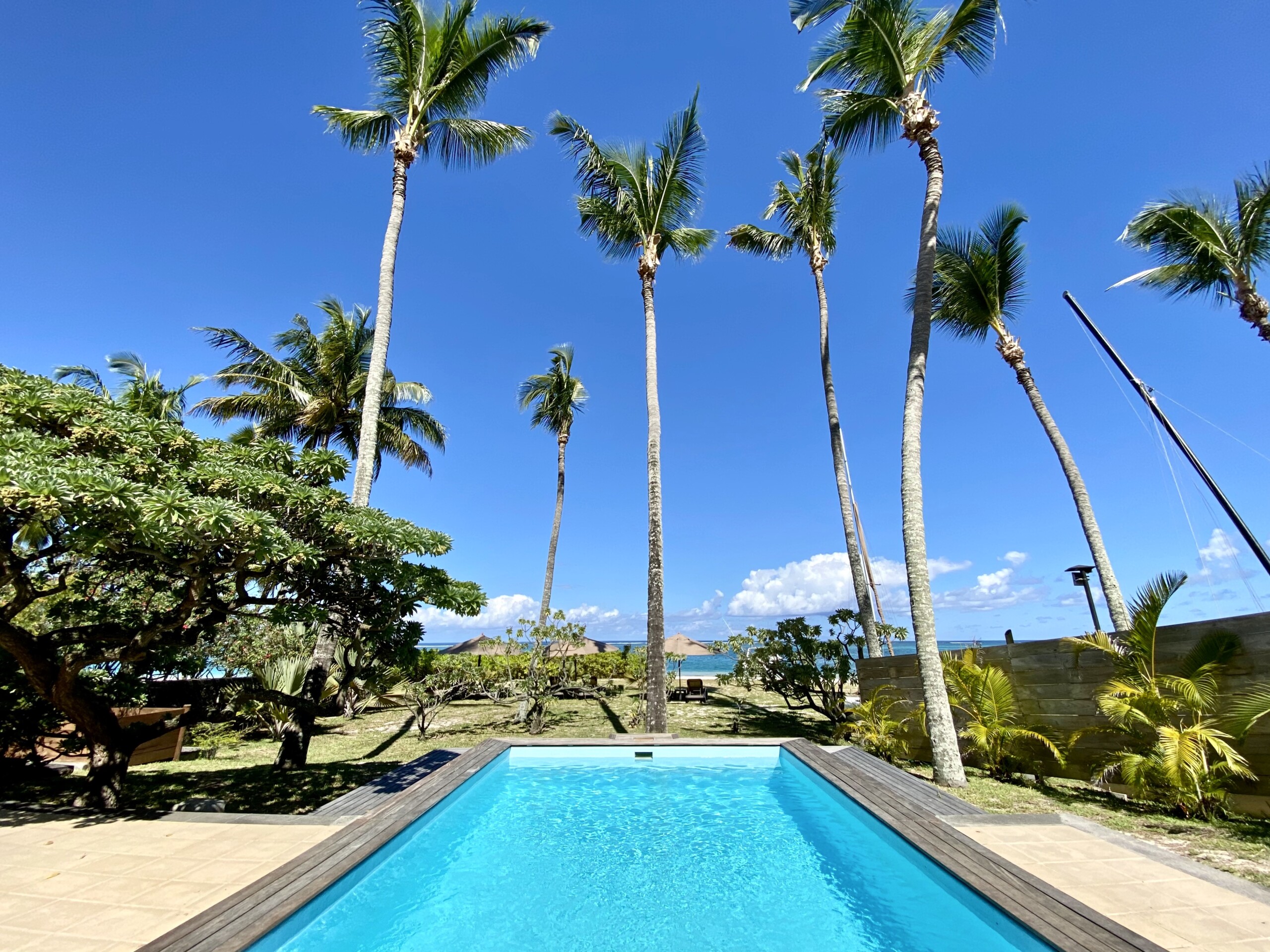 Der POOL Bereich mit seiner SonnenterrasseΒ und der direkte Strandzugang, das ist wohl der beste Grund, warum Sie nach Mauritius gekommen sind. POOL (nicht eingezΓ€unt), mit Sonnenliegen und Esstisch.