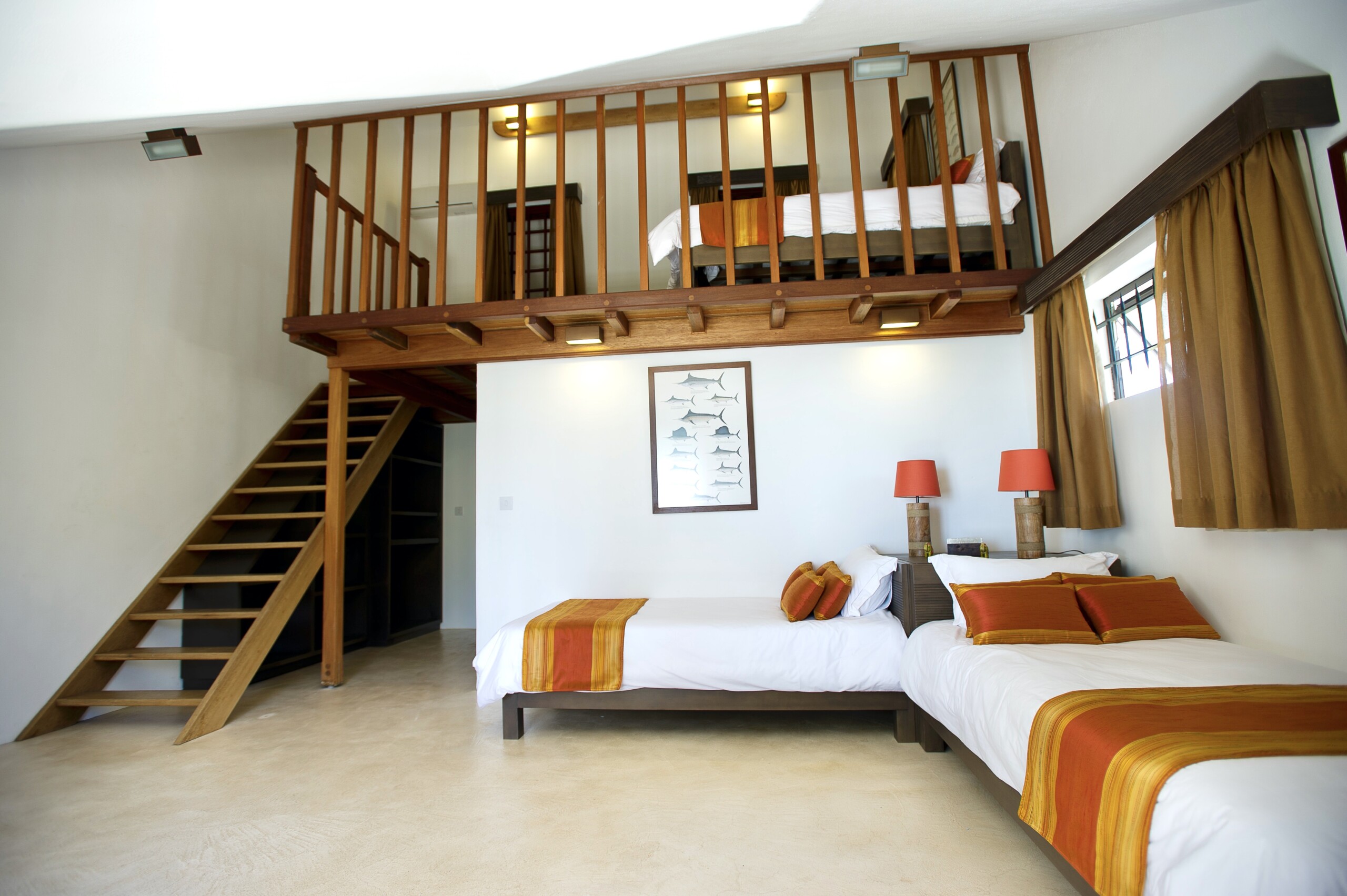 Der ERSTE STOCK mit einem Schlafzimmer plus eigenem Badezimmer und Balkon mit seinem unglaublichen Meerblick. Ein ZWEITES Schlafzimmer inklusive Badezimmer, mitΒ insgesamt 4 Einzelbetten (2 Betten befinden sich unter dem Dach und sind ΓΌberΒ “recht steilen” Treppen erreichbar, somit nur fΓΌr “grΓΆΓere” Kinder geeigent).